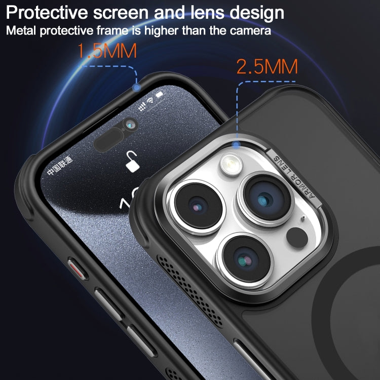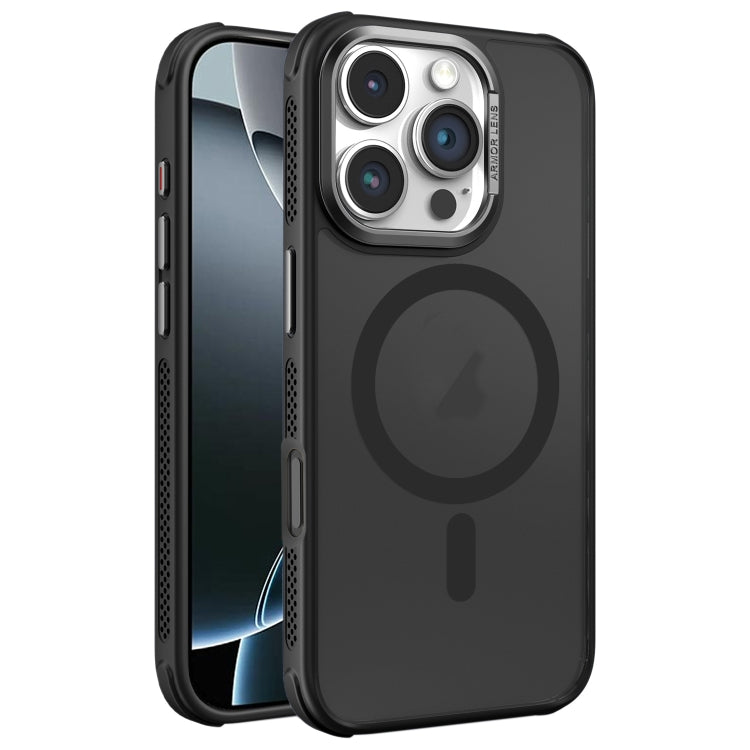 Estuche para Teléfono Magsafe con Marco de Lente de Metal Esmerilado y Sensación de Piel con Enfriamiento Lateral para iPhone 16 Pro (Negro)