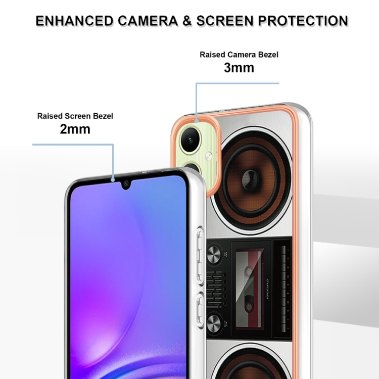Estuche para Teléfono Samsung Galaxy A06 4G Revestimiento Electrochapado Mármol Doble Cara Imd (Radio Retro)