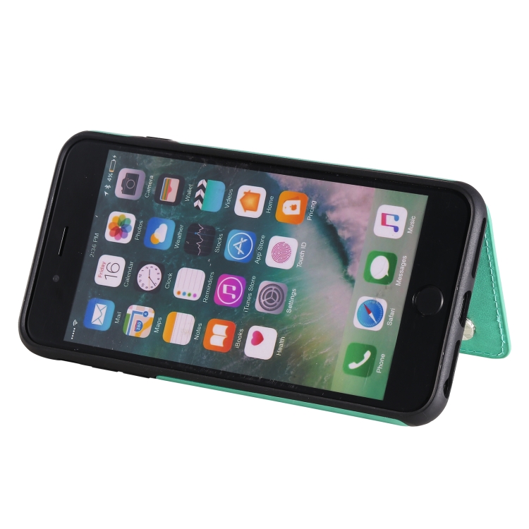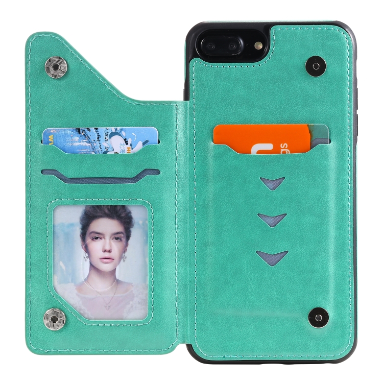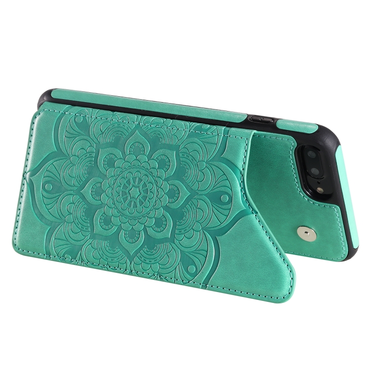 Estuche Protector iPhone 8 Plus 7 Plus Patrón Flores Soporte Ranuras Tarjetas Marco Fotos (Green)