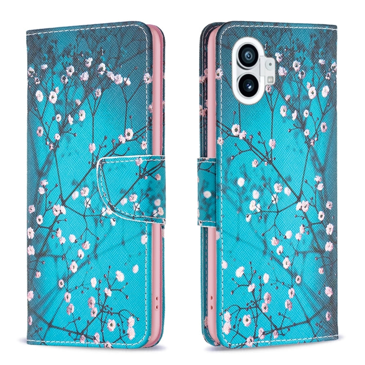 Estuche de Cuero For Nothing Phone 1 con Patrón Dibujo a Color (Flor de Ciruelo)