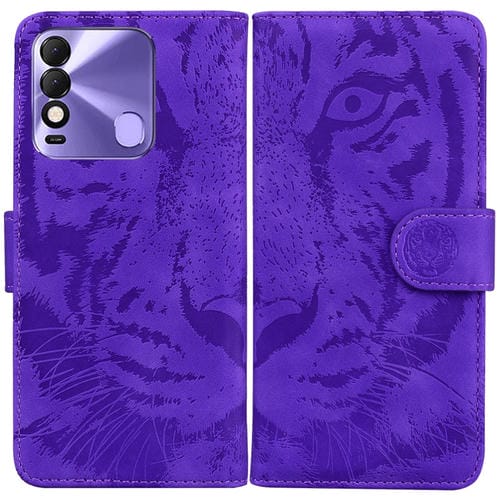 Funda para Tecno Spark 8 / 8T con patrón de tigre en relieve, tipo flip horizontal, cuero (Morado)