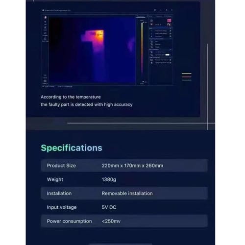 • Voltaje de entrada: 5V DC; Consumo de energía: <250mV; Tecnología de imagen termal infrarroja 3D
