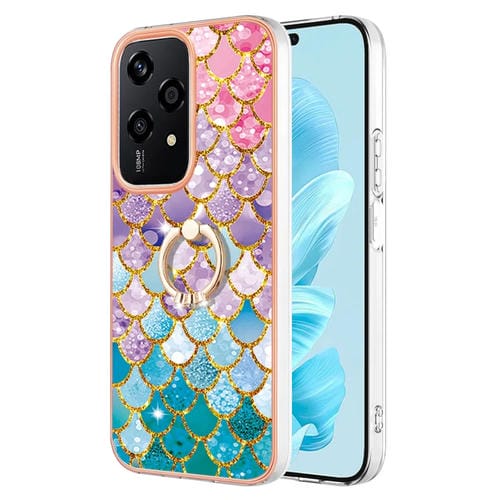Funda TPU a Prueba de Golpes con Patrón Galvanoplastia y Soporte Anillo para Honor 200 Lite (Escamas de Colores)