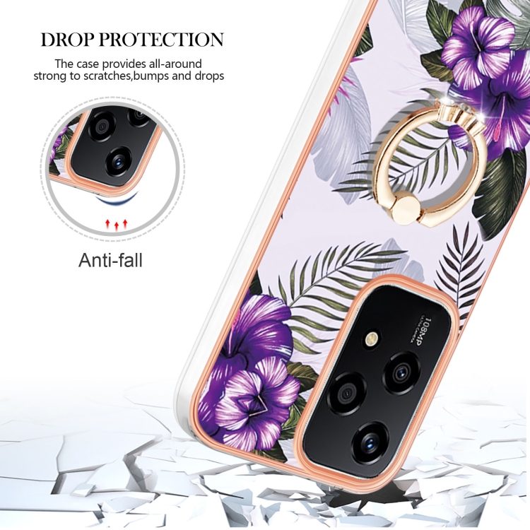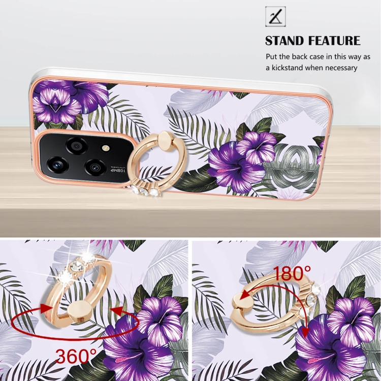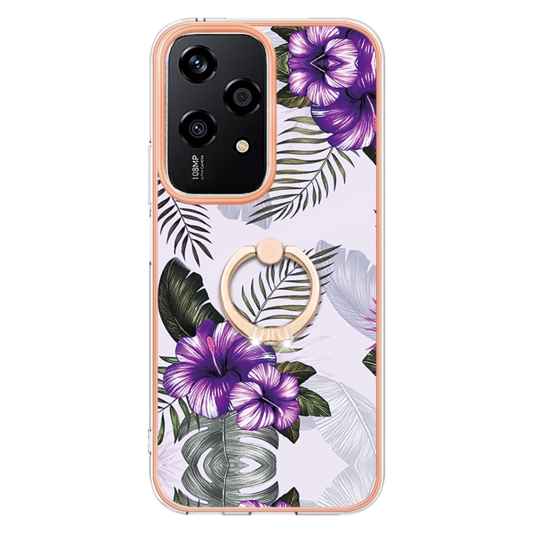 Funda TPU a Prueba de Golpes con Soporte Anillo Diamantes Honor 200 Lite (Flor Morada)