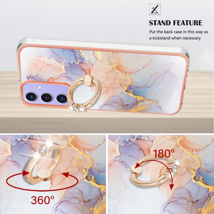 Funda a Prueba de Golpes TPU Samsung Galaxy A16 5G con Soporte Anillo y Patrón Galvanoplastia (Mármol Blanco Vía Láctea)