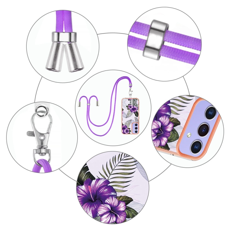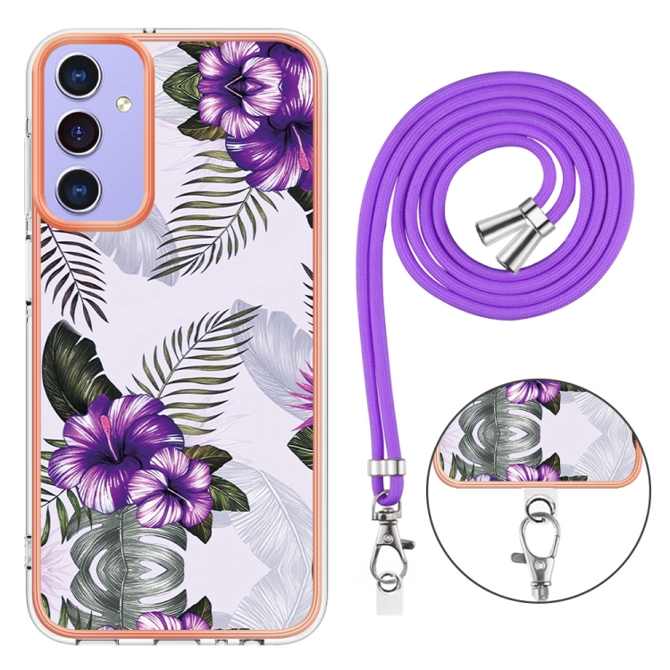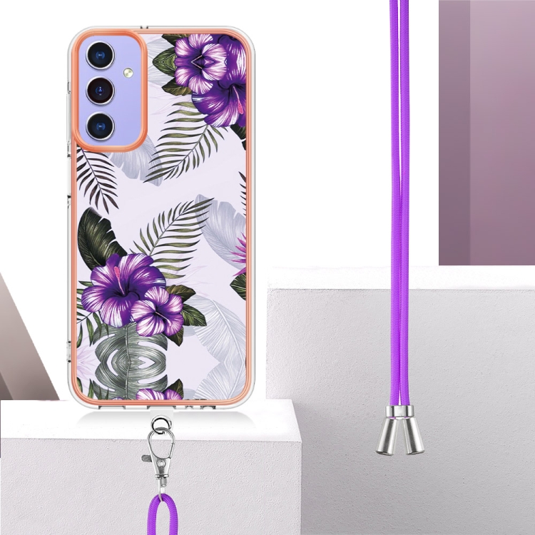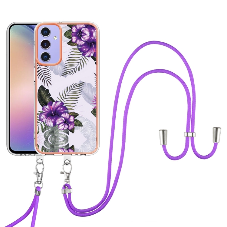 Funda a Prueba de Golpes TPU Samsung Galaxy A16 5G con Cordón para El Cuello (Flor Morada)