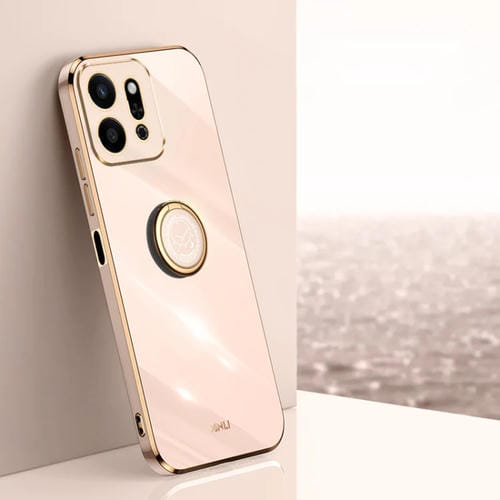 Funda TPU con Borde Dorado y Revestimiento 6D para Honor Play9T 5G con Soporte Anillo (Rosa)