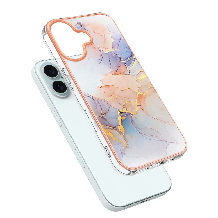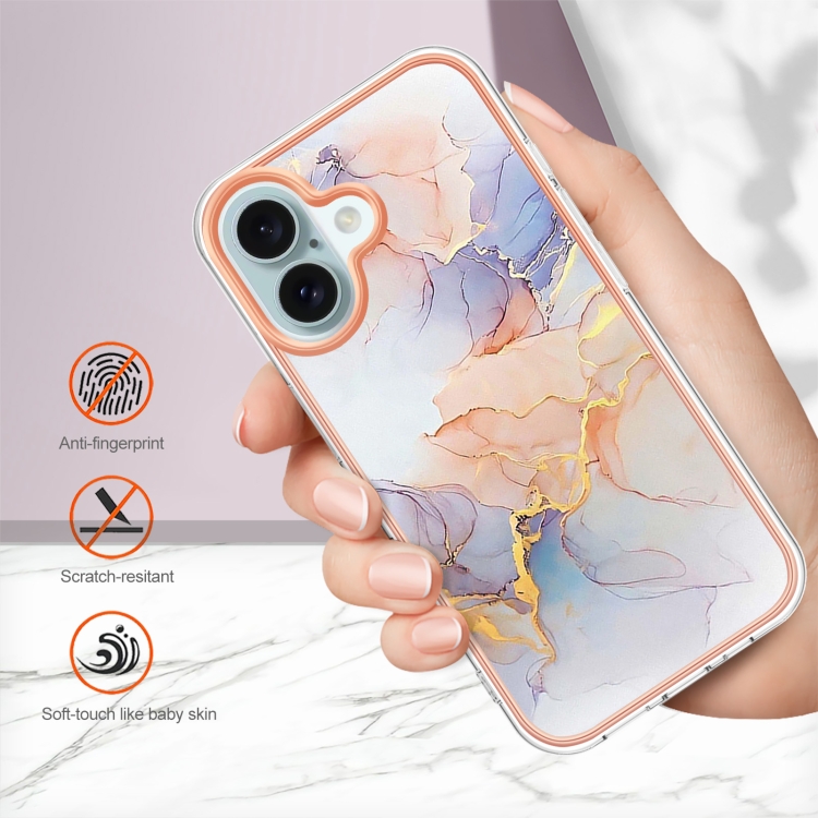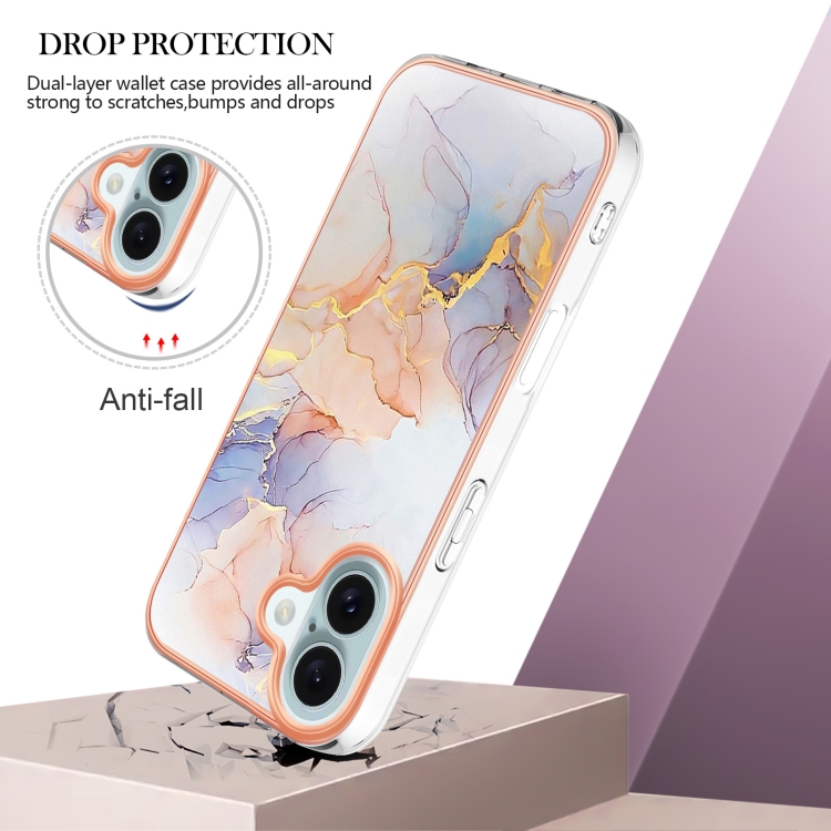 Funda a Prueba de Golpes TPU Imd con Patrón Galvanoplastia para iPhone 16 Plus (Mármol Blanco Vía Láctea)