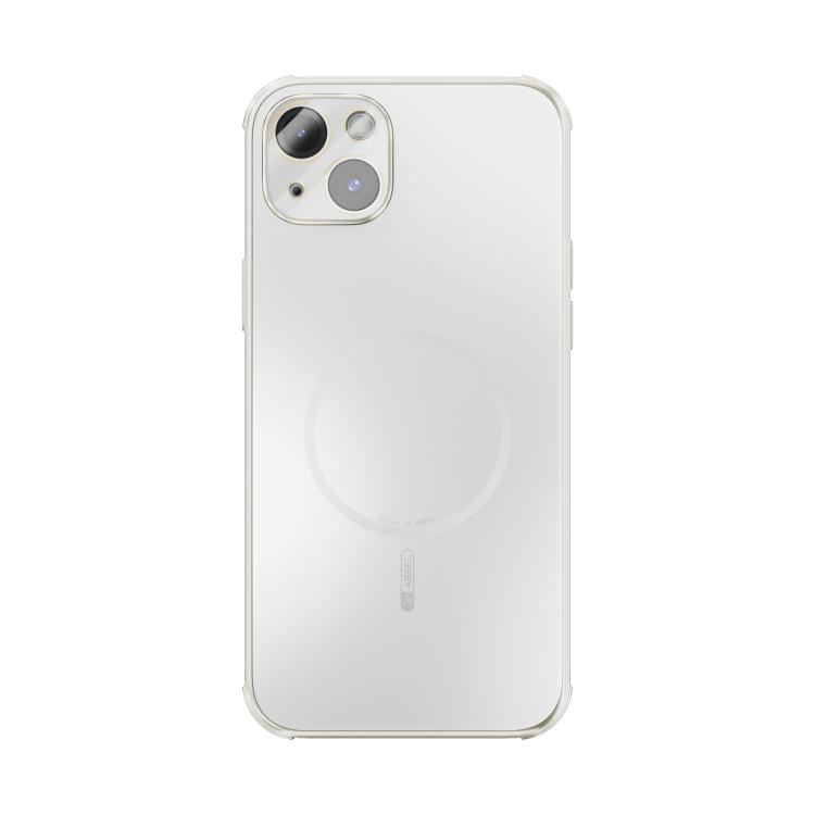 Funda ABEEL MagSafe esmerilada con disipación de calor y película para lente para iPhone 15 Plus (blanca)