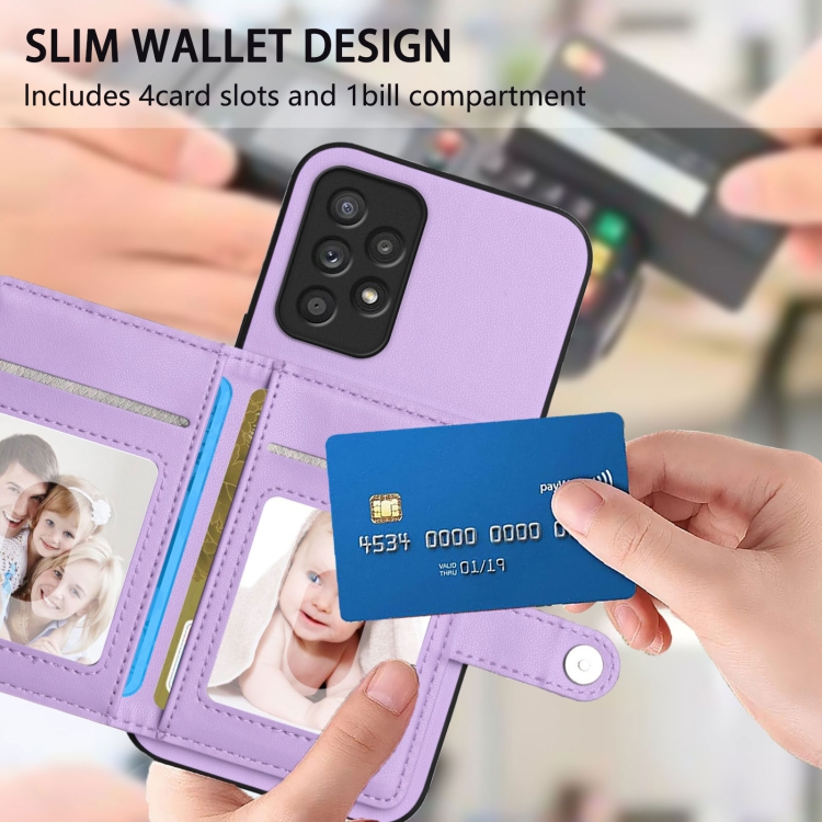 Funda Antirrobo RFID con Botón para Tarjeta Samsung Galaxy A52 (Morado)