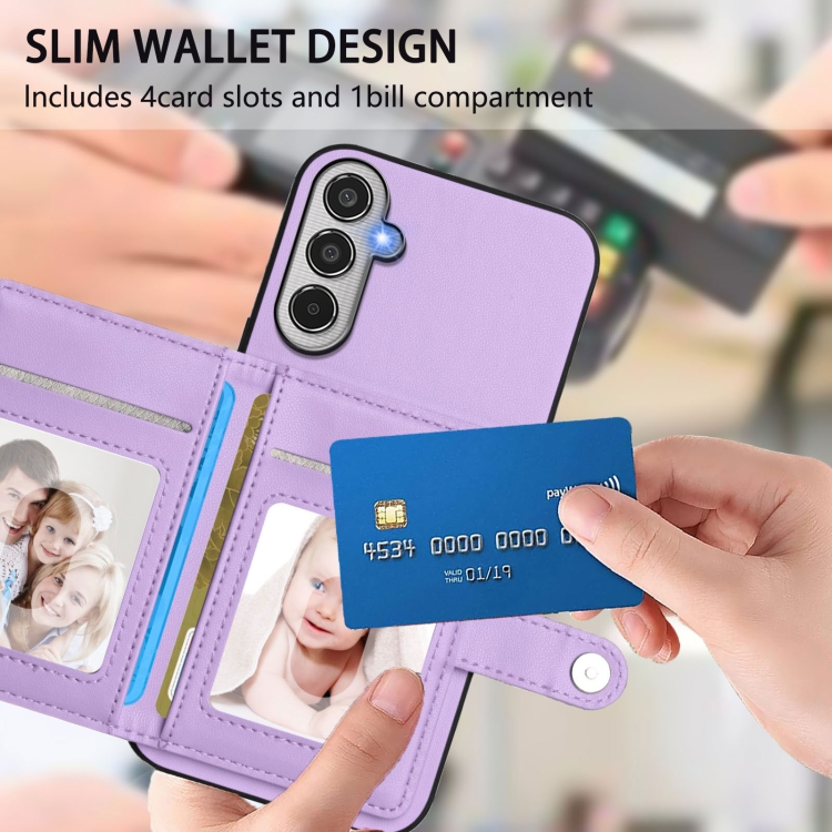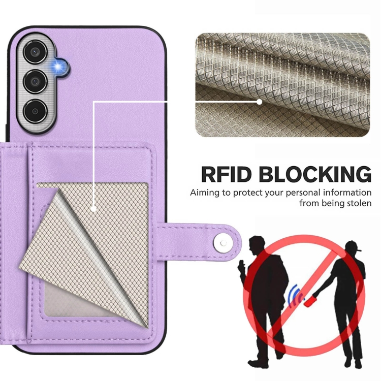 Funda Antirrobo Rfid con Botón para Tarjeta Samsung Galaxy M35 (Morado)
