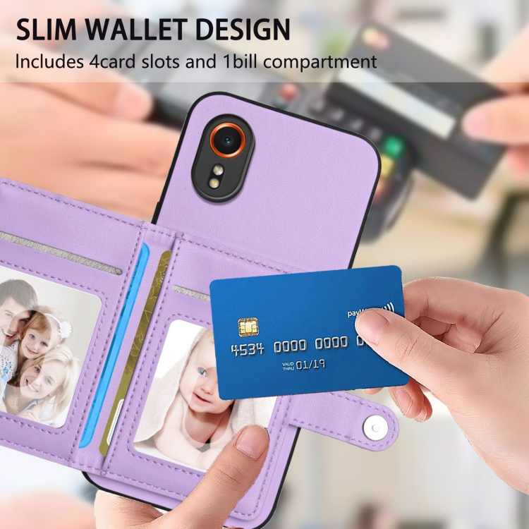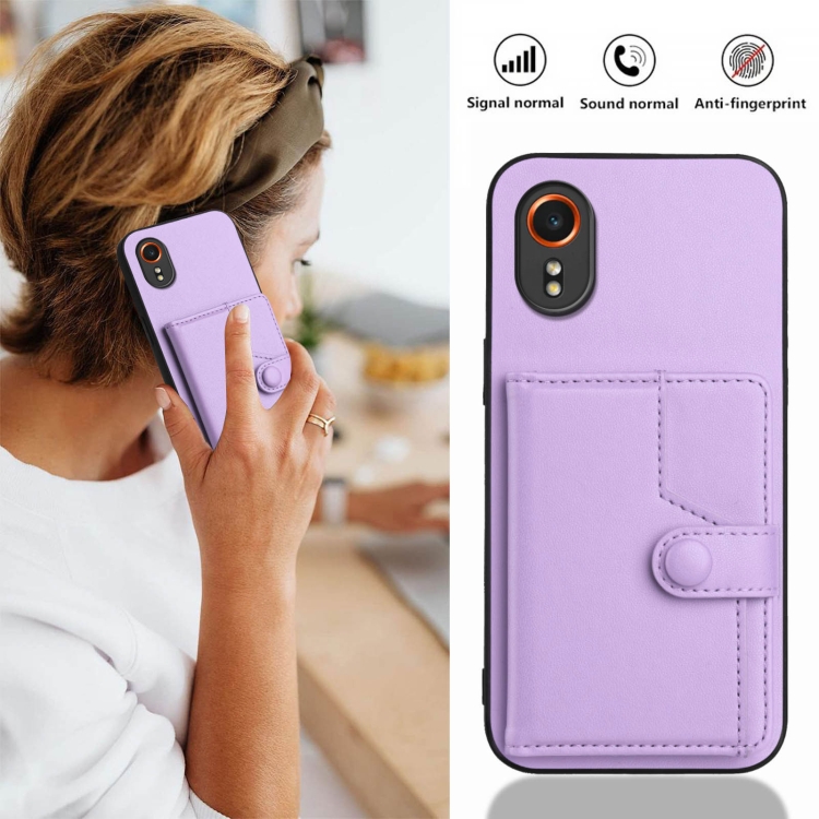 Funda Antirrobo Rfid con Botón para Tarjeta Samsung Galaxy Xcover7 (Morado)