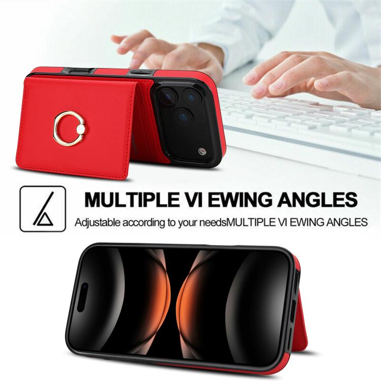 Funda antirrobo RFID para iPhone 17 Pro Max con anillo para tarjetas (roja)