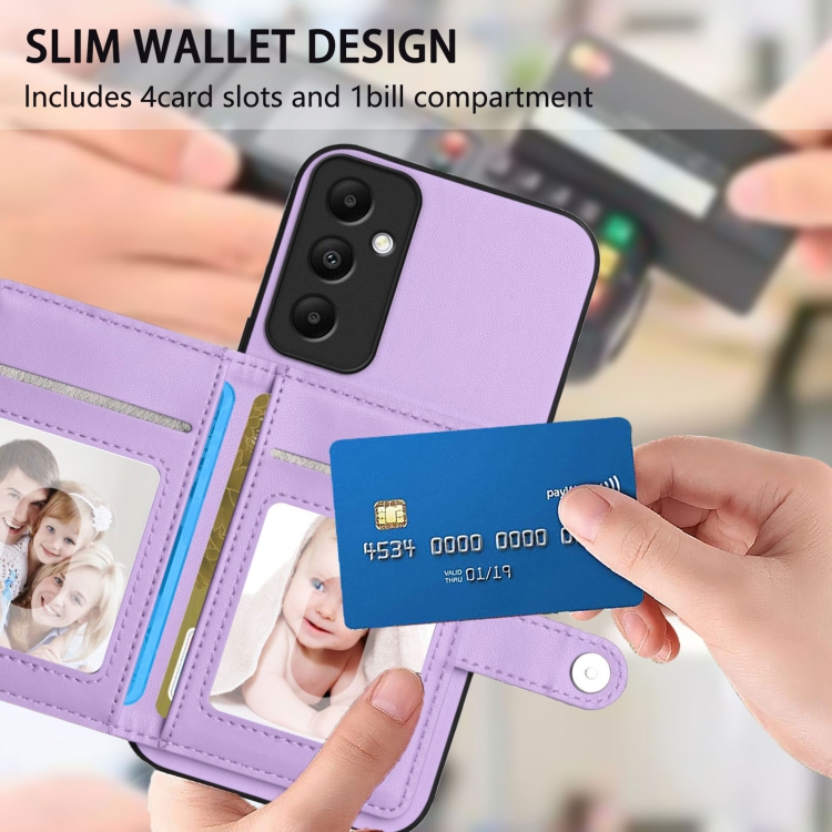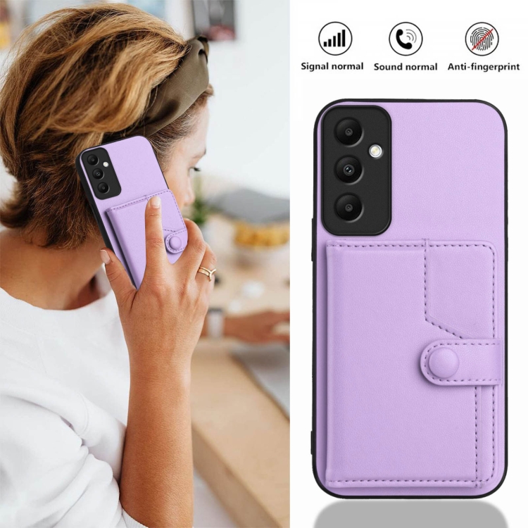Funda Antirrobo Rfid Samsung Galaxy A05S 4G con Botón y Tarjetero (Morado)