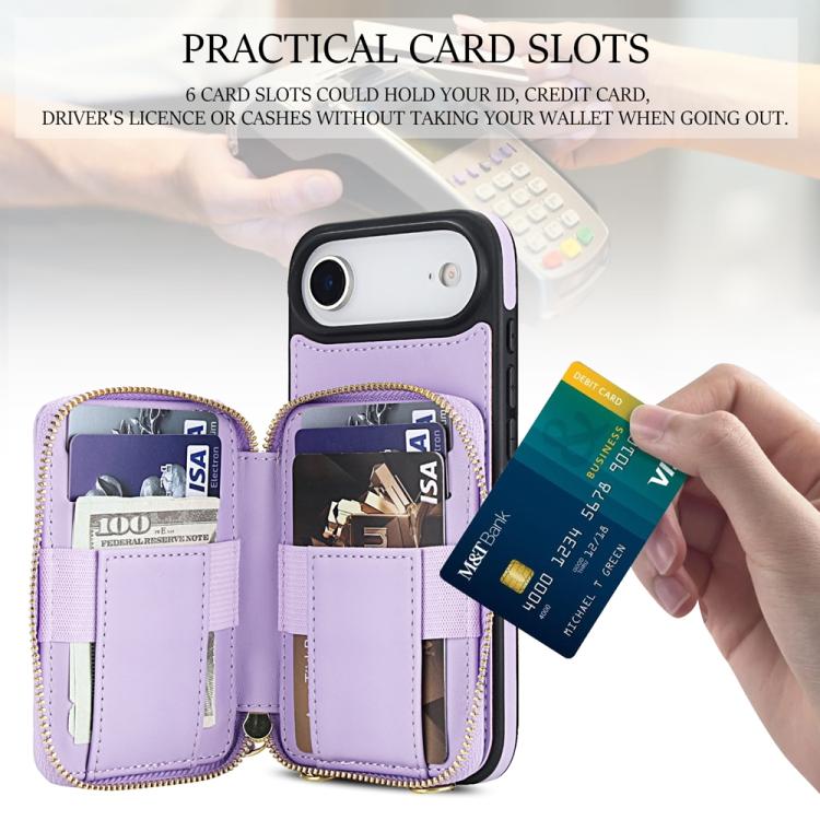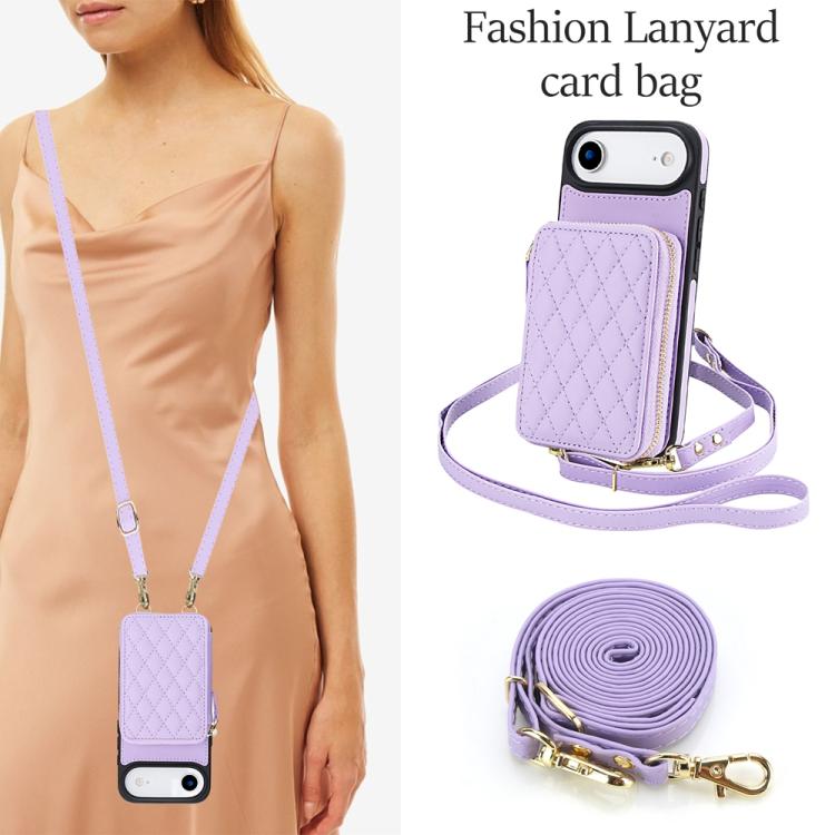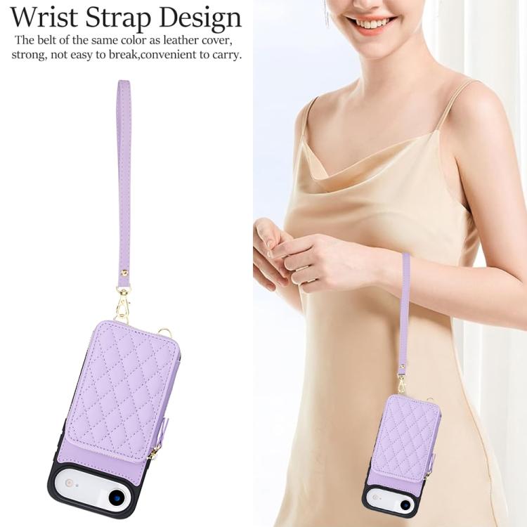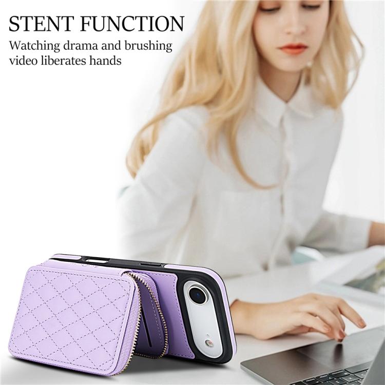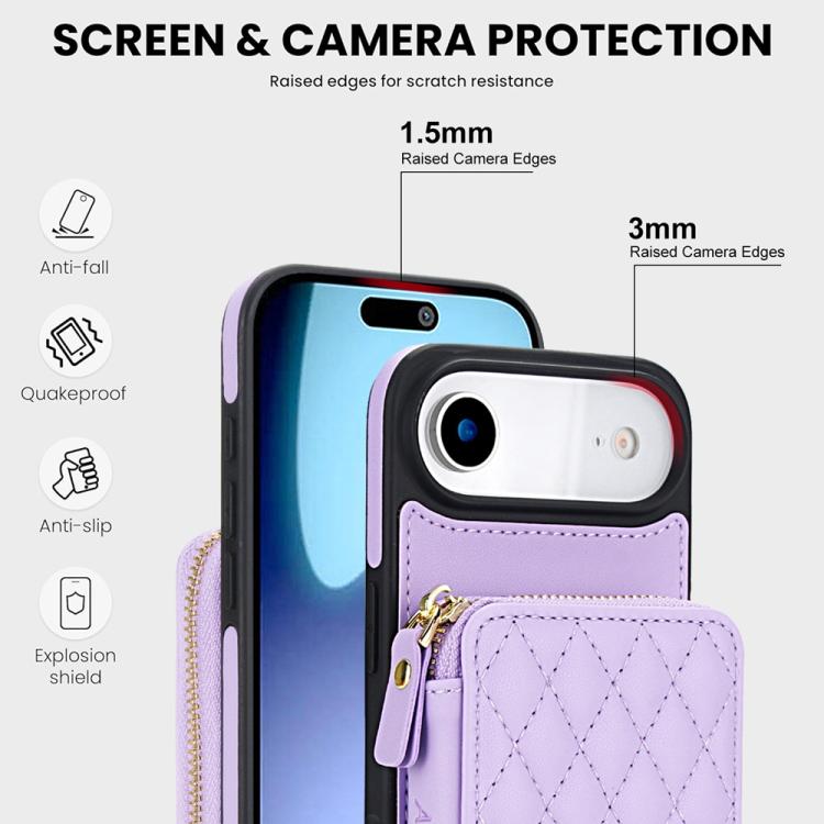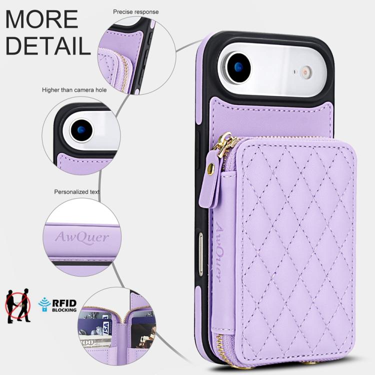 Funda AwQuer de piel con diseño de rombos y cremallera para iPhone Air (morado)