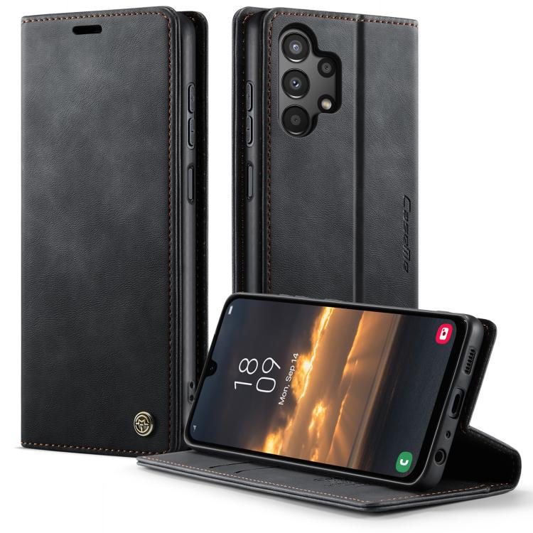 Funda CaseMe 033 para Samsung Galaxy A13/A04s, forro de piel de becerro, microfibra y bloqueo RFID (negra)
