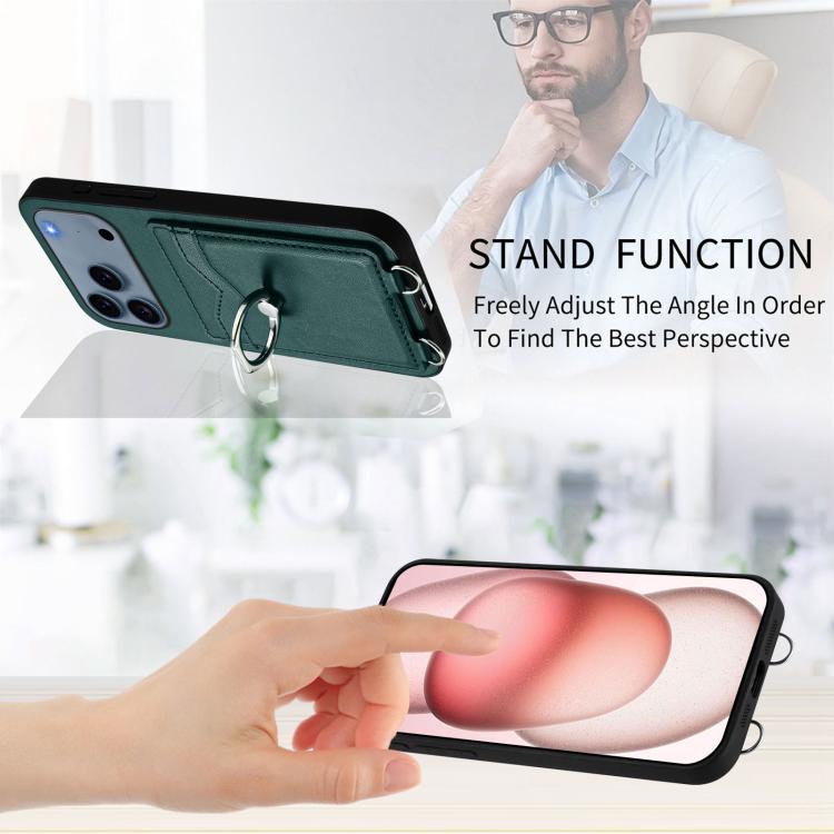 Funda con tarjetero y anillo para iPhone 17 Pro Max R20 (verde)
