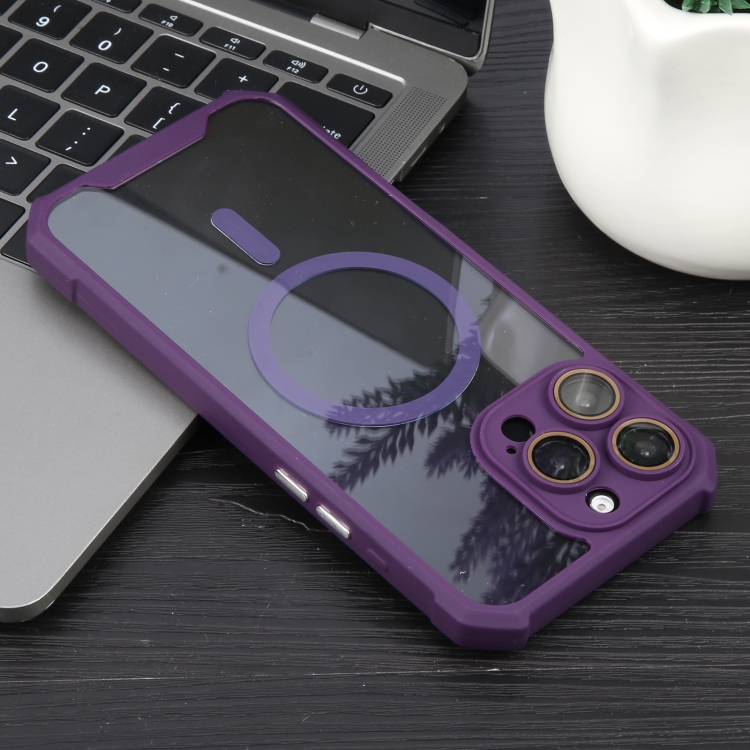 Funda de Acrílico y TPU con Bocina Magnética Magsafe para iPhone 16 Pro con Película de Lente (Morado)
