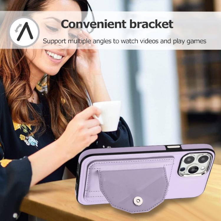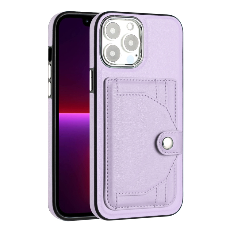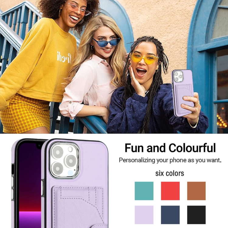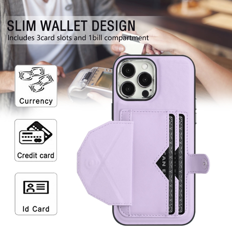 Funda para iPhone 15 Pro Max de Cuero a Prueba de Golpes con Tarjetero (Púrpura)