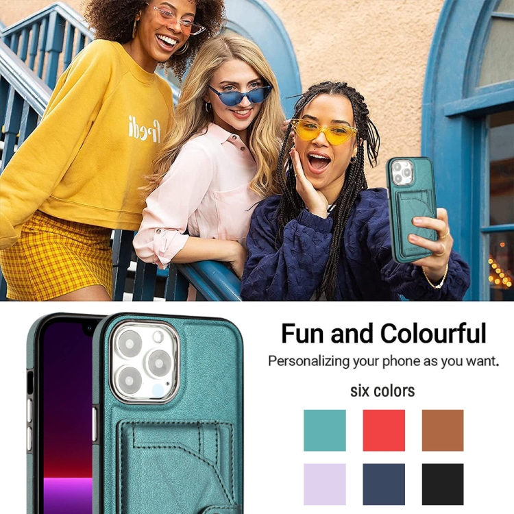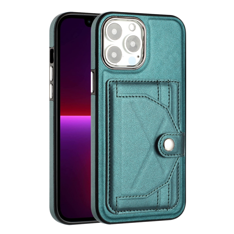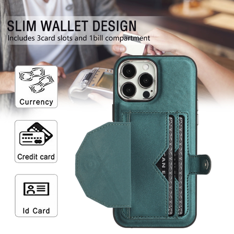 Funda de Cuero para iPhone 15 Pro Max a Prueba de Golpes con Tarjetero (Verde)