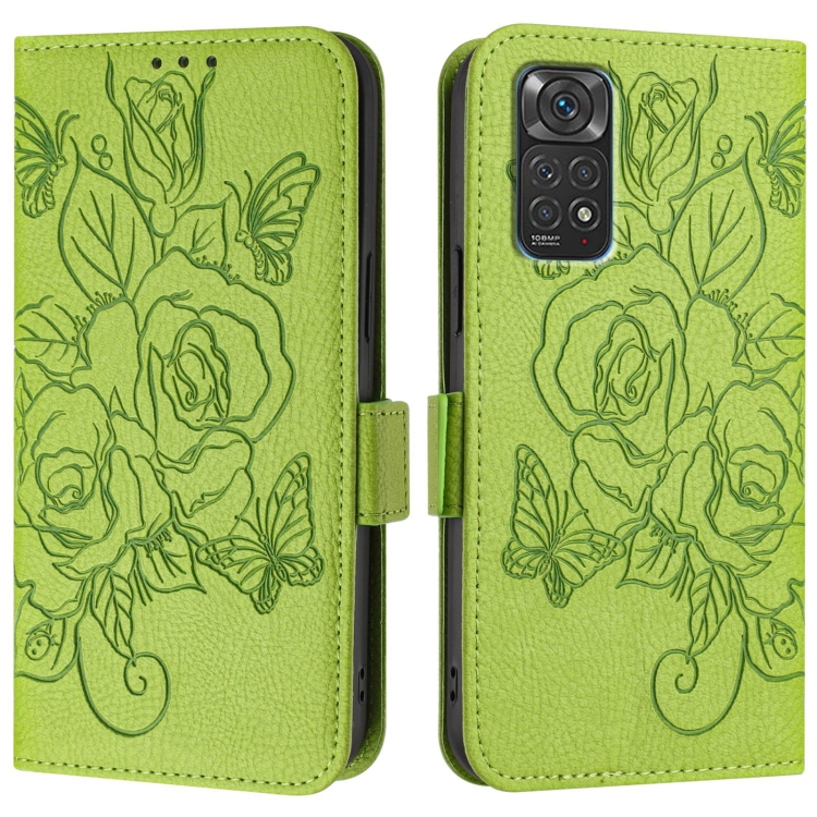 Funda de Cuero Antirrobo con Diseño de Rosa En Relieve Rfid para Redmi Note 11S 5G/Xiaomi Poco M4 Pro 5G (Verde)