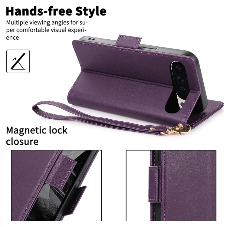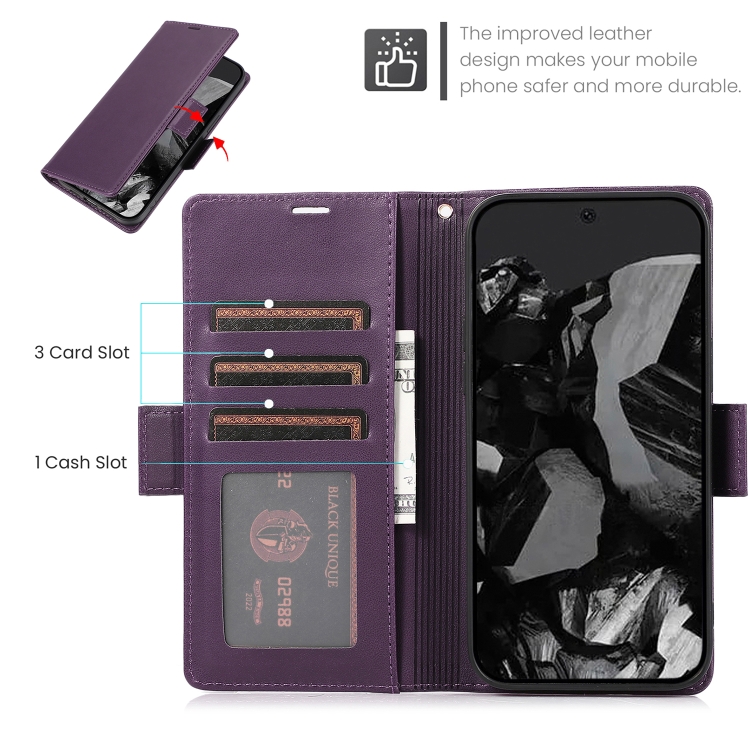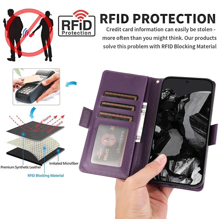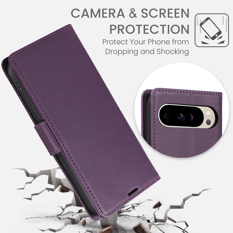 Funda de Cuero Antirrobo con Hebilla Lateral RFID para Google Pixel 9 y 9 Pro (Morado Oscuro)
