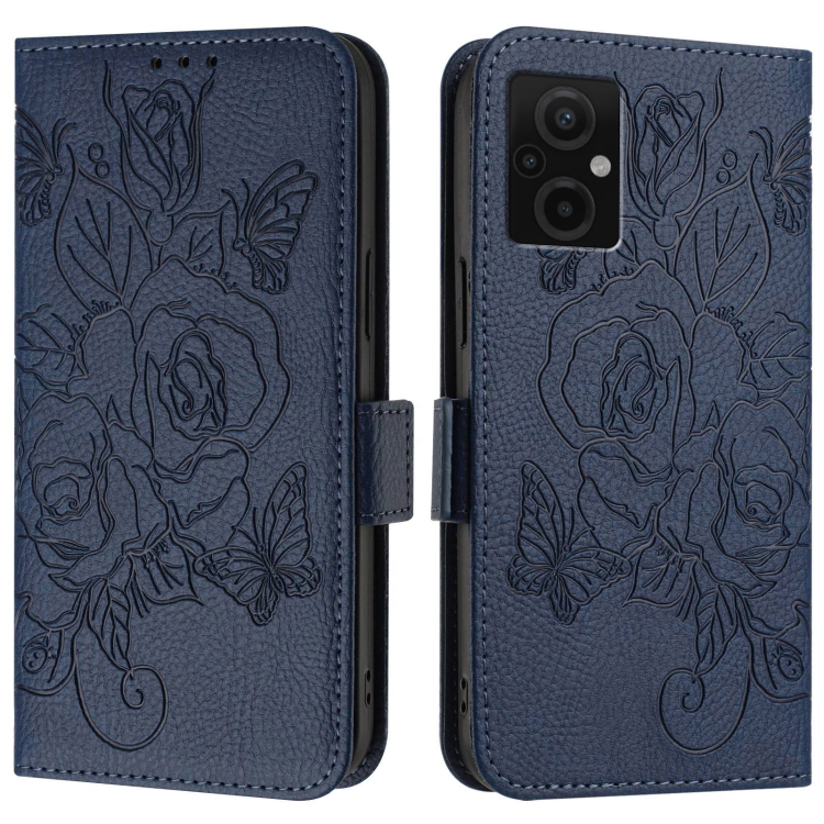 Funda de Cuero Antirrobo con Protección Rfid para Redmi 10 5G/10 Prime+ 5G, con Relieve Global En Rosa (Azul Oscuro)