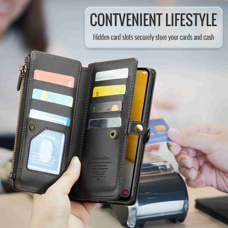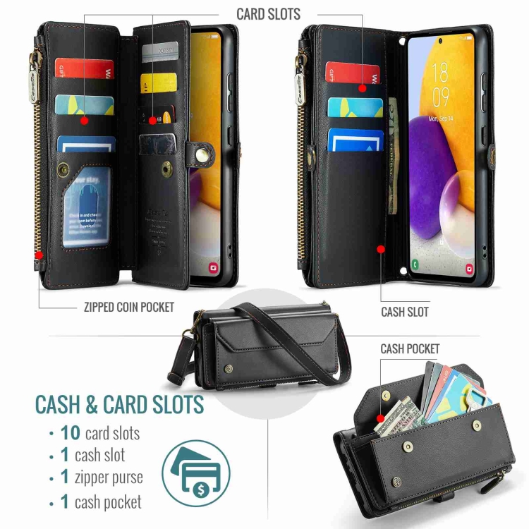 Funda de Cuero Antirrobo Caseme C36 para Samsung Galaxy A72 con Ranuras y Billetera con Cremallera (Negro)