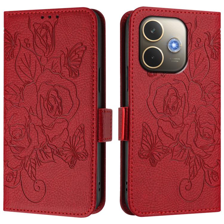 Funda de Cuero Antirrobo con Rfid para Oppo A5 Pro 5G, con Relieve Global En Rosa (Rojo)