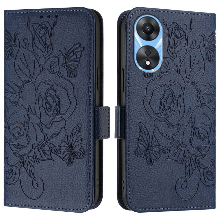 Funda de Cuero Antirrobo con Rfid para Teléfono Oppo A78 5G/A1X 5G con Relieve En Rosa (Azul Oscuro)