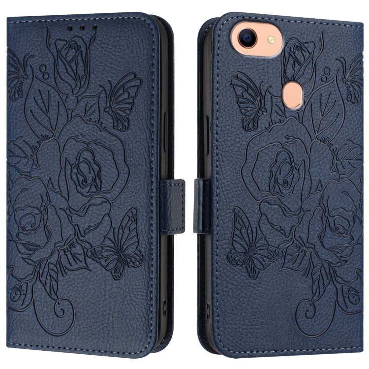 Funda de Cuero Antirrobo con Rfid para Teléfono Oppo F17/A73 2020 4G con Relieve Global (Azul Oscuro)