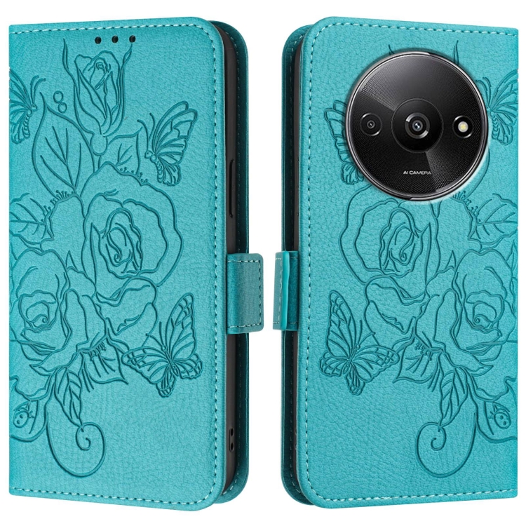 Funda de Cuero Antirrobo con Rfid para Teléfono Redmi A3/Xiaomi Poco C61 4G con Relieve Global (Azul Claro)