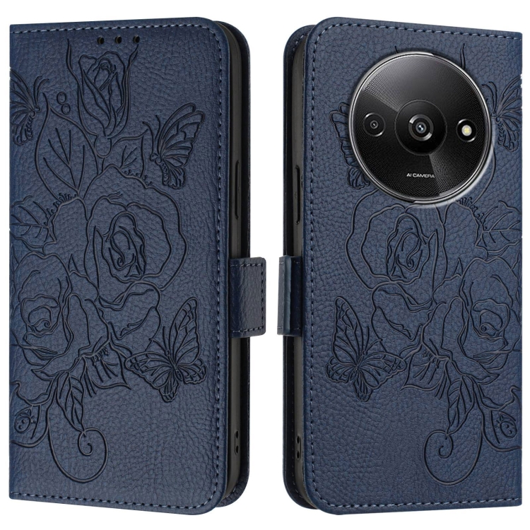 Funda de Cuero Antirrobo con Rfid para Teléfono Redmi A3/Xiaomi Poco C61 4G con Relieve Global (Azul Oscuro)