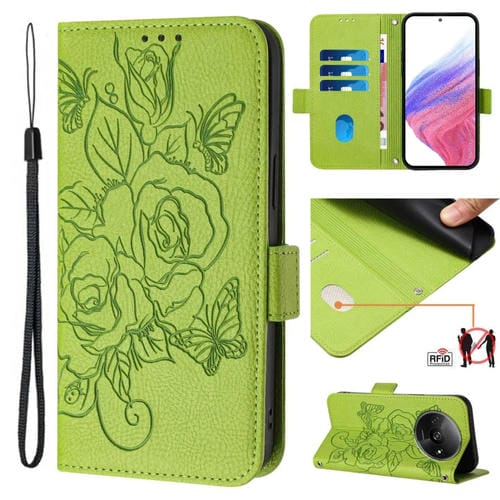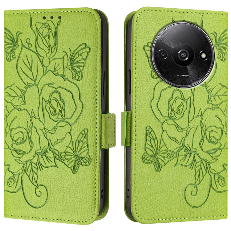 Funda de Cuero Antirrobo con Rfid para Teléfono Redmi A3 / Xiaomi Poco C61 4G con Relieve Global En Rosa (Verde)