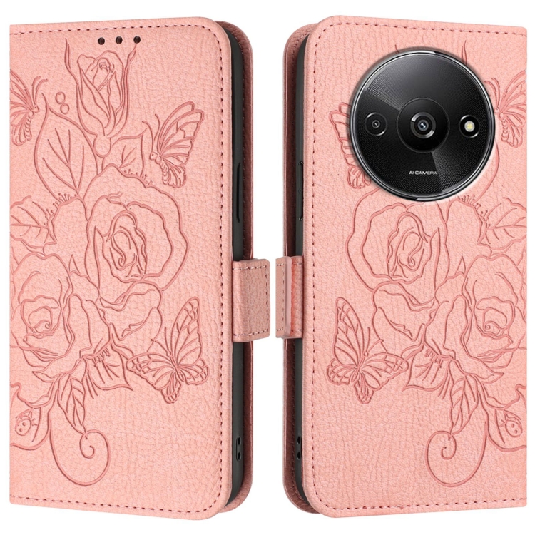 Funda de Cuero Antirrobo con Rfid para Teléfono Redmi A3/Xiaomi Poco C61 4G con Relieve Global (Rosa)