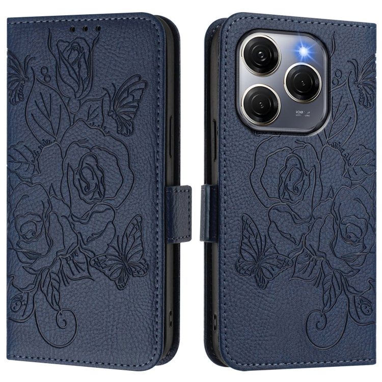 Funda de Cuero Antirrobo con RFID para Tecno Spark 20 Pro 5G con Relieve (Azul Oscuro)