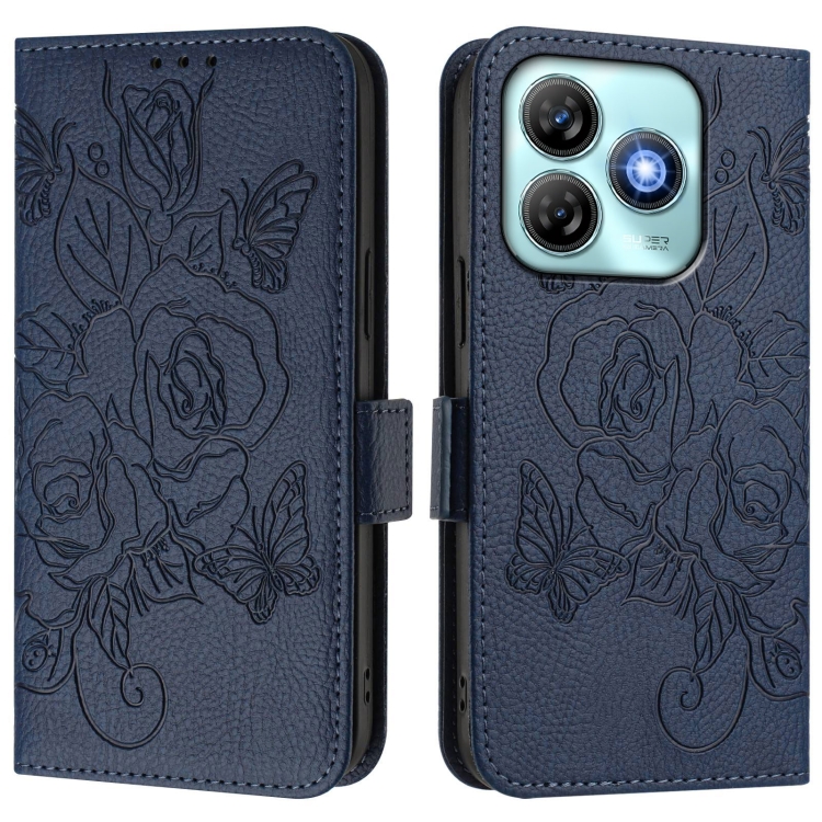 Funda de Cuero Antirrobo con Rfid para ZTE Blade A75 4G con Relieve (Azul Oscuro)
