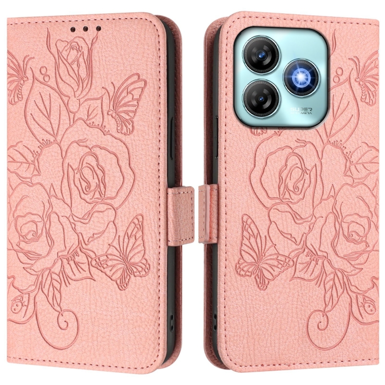 Funda de Cuero Antirrobo con RFID para ZTE Blade A75 4G con Relieve (Rosa)