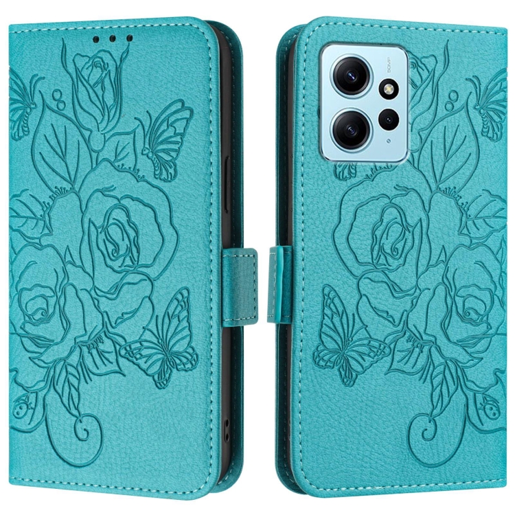 Funda de Cuero Antirrobo con Rfid y Diseño de Rosa En Relieve para Redmi Note 12 4G (Azul Claro)