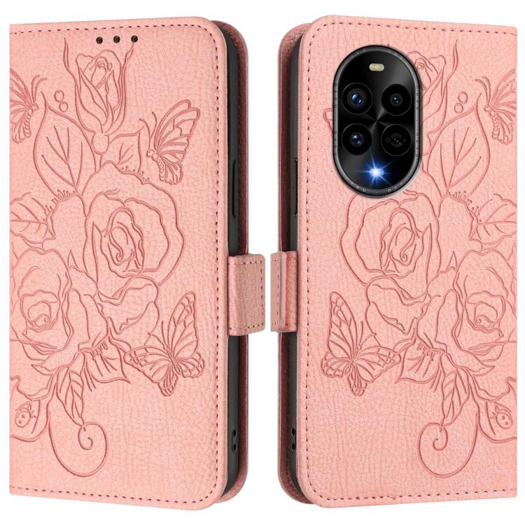 Funda de Cuero Antirrobo con RFID y Diseño en Relieve para Huawei Nova 13 Pro (Rosa)