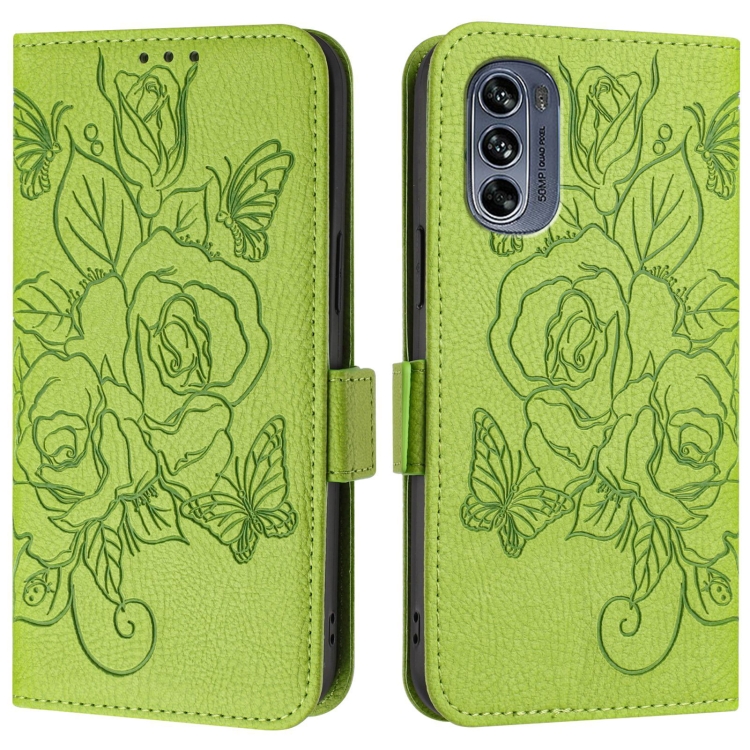 Funda de Cuero Antirrobo con RFID y Diseño en Relieve para Motorola Moto G62 5G (Verde)