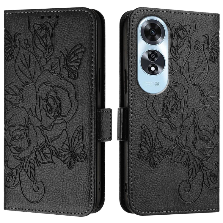 Funda de Cuero Antirrobo con Rfid y Diseño En Relieve para Oppo A60 4G (Negro)