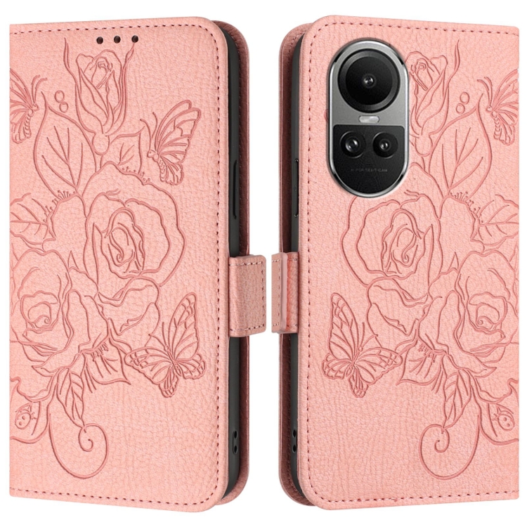 Funda de Cuero Antirrobo con Rfid y Diseño En Relieve para Oppo Reno10/Reno10 Pro (Rosa)
