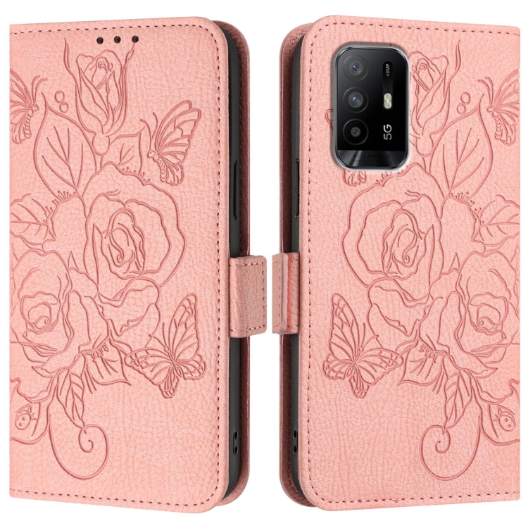 Funda de Cuero Antirrobo con Rfid y Diseño En Relieve para Oppo Reno6 Lite (Rosa)
