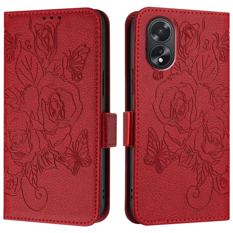 Funda de Cuero Antirrobo con Rfid y Relieve Global para Oppo A38 4G/A18 4G (Roja)