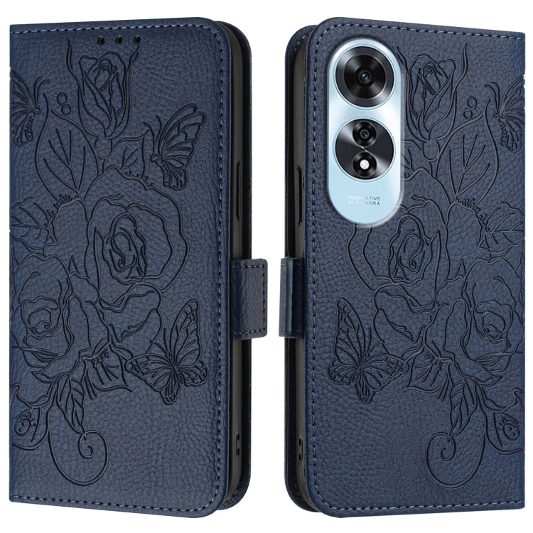 Funda de Cuero Antirrobo con Rfid y Relieve Rosa para Oppo A60 4G (Azul Oscuro)