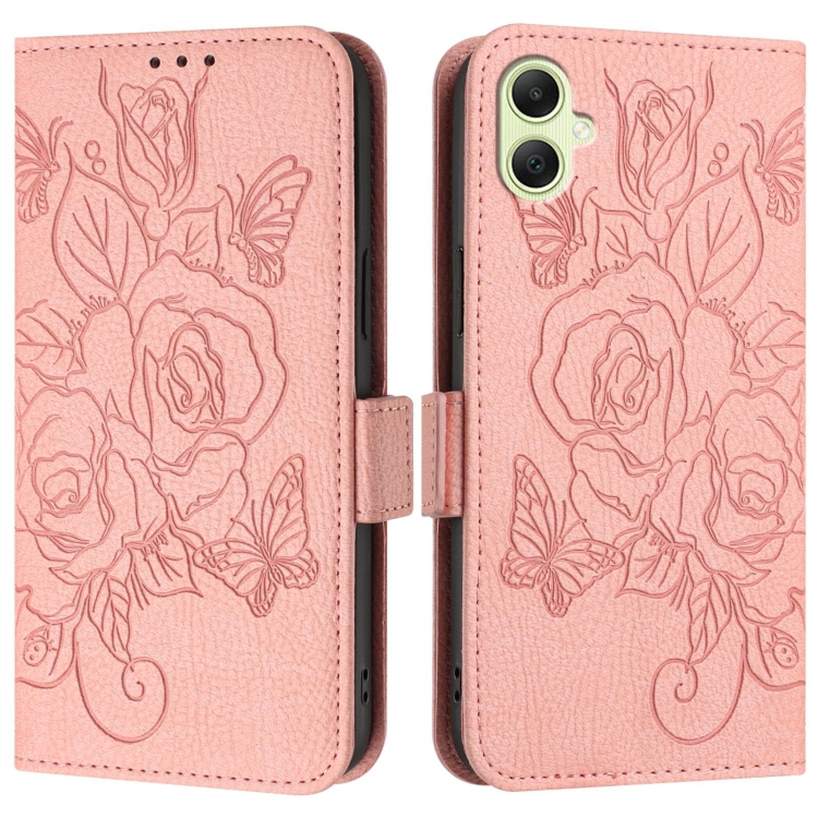 Funda de Cuero Antirrobo con Rfid y Relieve para Samsung Galaxy A05 4G (Rosa)
