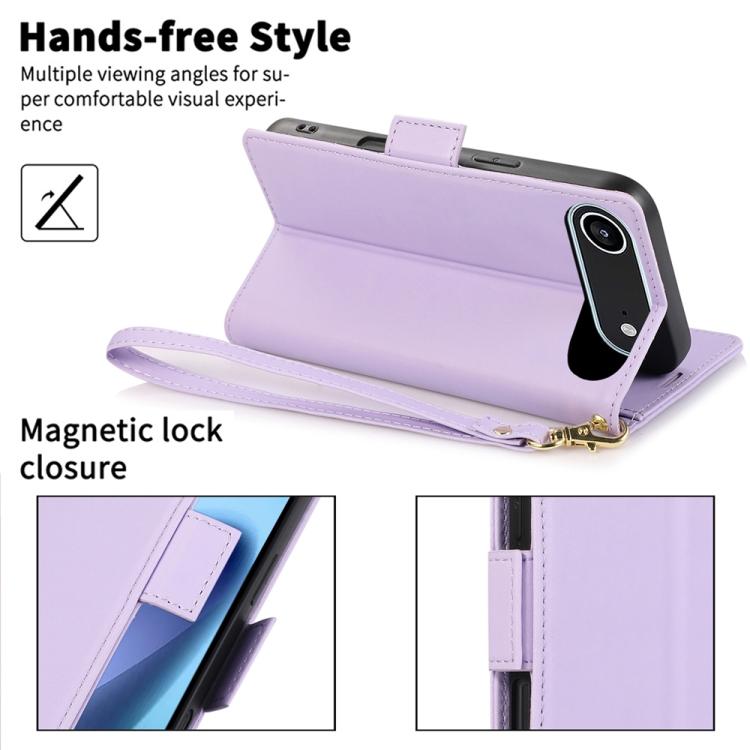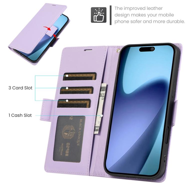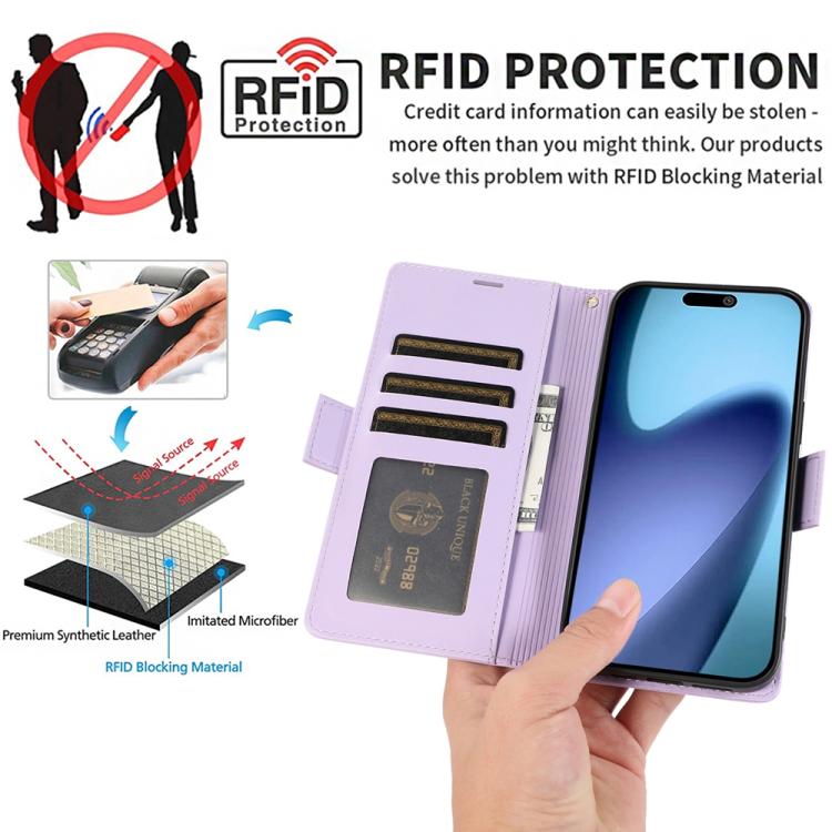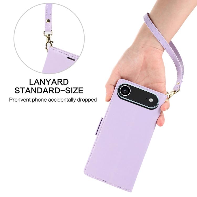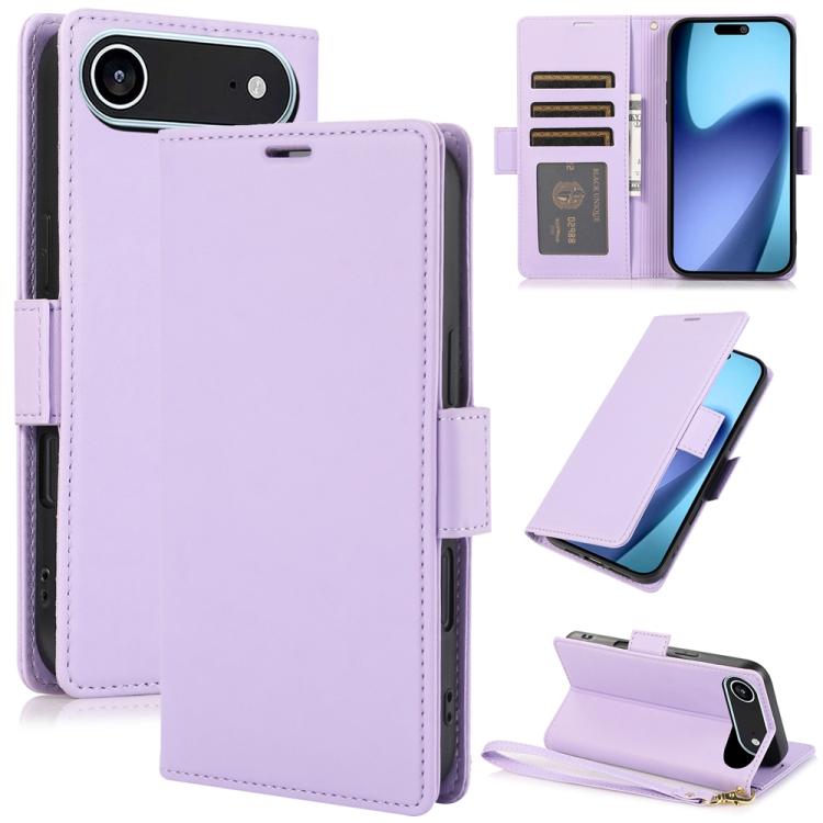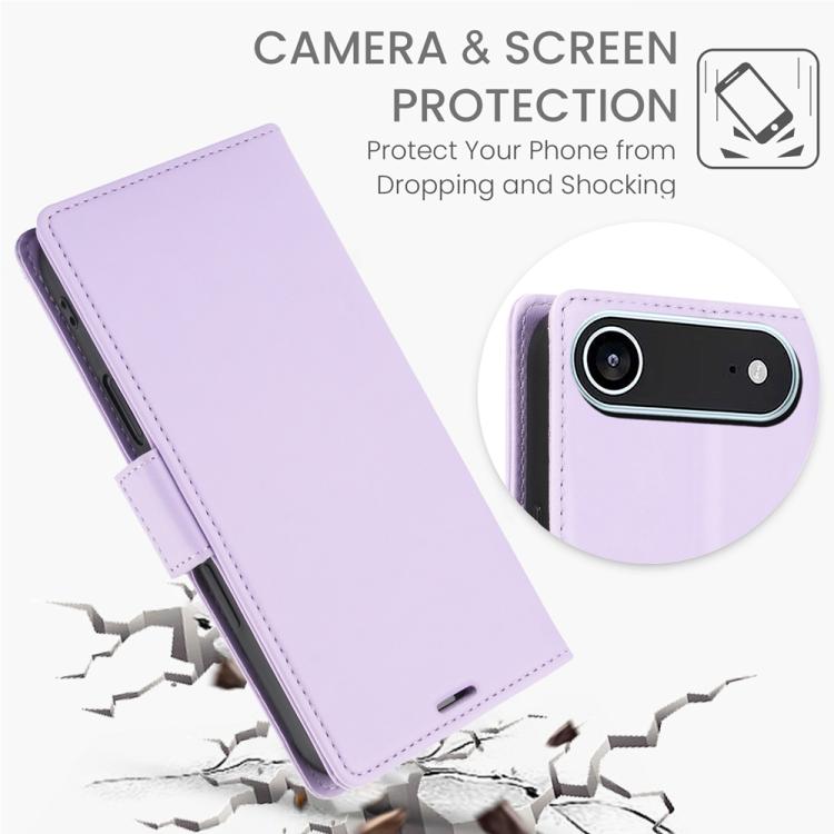 Funda de cuero antirrobo RFID con hebilla lateral para iPhone Air (morado claro)