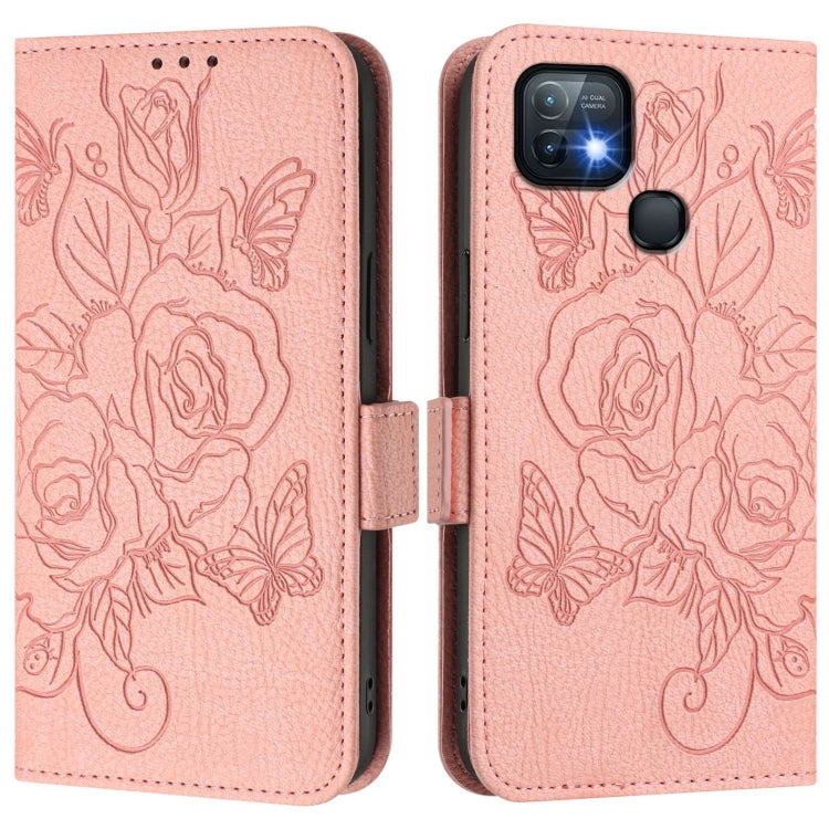 Funda de Cuero Antirrobo RFID con Relieve para Infinix Hot 10I (Rosa)