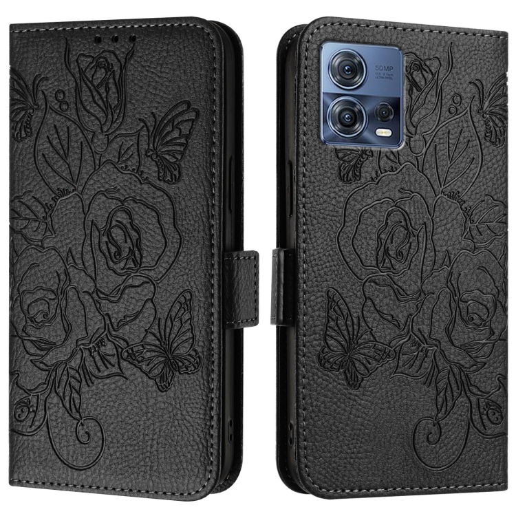 Funda de Cuero Antirrobo Rfid con Relieve para Motorola Edge 30 Fusion (Negra)